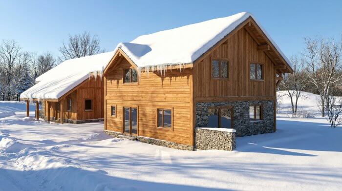 Nos structures vivent. Elles affrontent la pluie, la neige et le soleil. Nano Banana permet de simuler ces conditions en un clic. Montrer une charpente sous la pluie, c’est montrer la réalité d’un montage et la réaction des matériaux dans leur environnement réel.